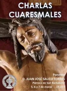 La Parroquia convoca las Charlas Cuaresmales como una ayuda para vivir este tiempo de oración y penitencia. En esta ocasión tendrán lugar los días 5, 6 y 7 de marzo a las 19:30h.