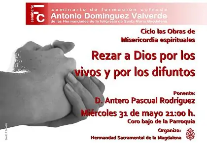 Antero Pascual tiene la respuesta. Se trata del Rector del Seminario Metropolitano de Sevilla y ofrecerá una conferencia el próximo miércoles 31 de mayo en nuestra parroquia sobre la obra de misericordia espiritual, «rezar a Dios por los vivos y los difuntos».