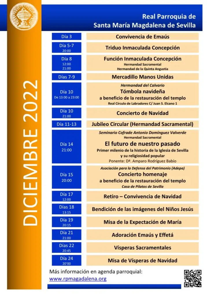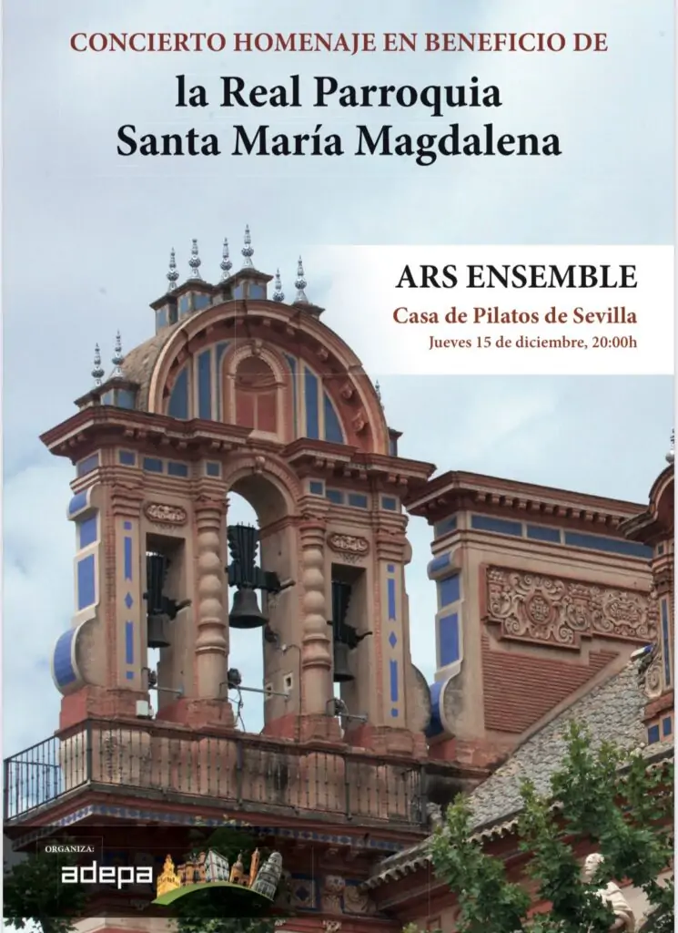 El próximo jueves 15 de diciembre a las 20:00h. en la Casa de Pilatos tendrá lugar el Concierto Homenaje a beneficio de la Real Parroquia de Santa María Magdalena. Organizado por ADEPA ell concierto será un reconocimiento a la labor de nuestra Parroquia de conservación del Patrimonio Histórico. Las escasas entradas de las que aún disponemos […]