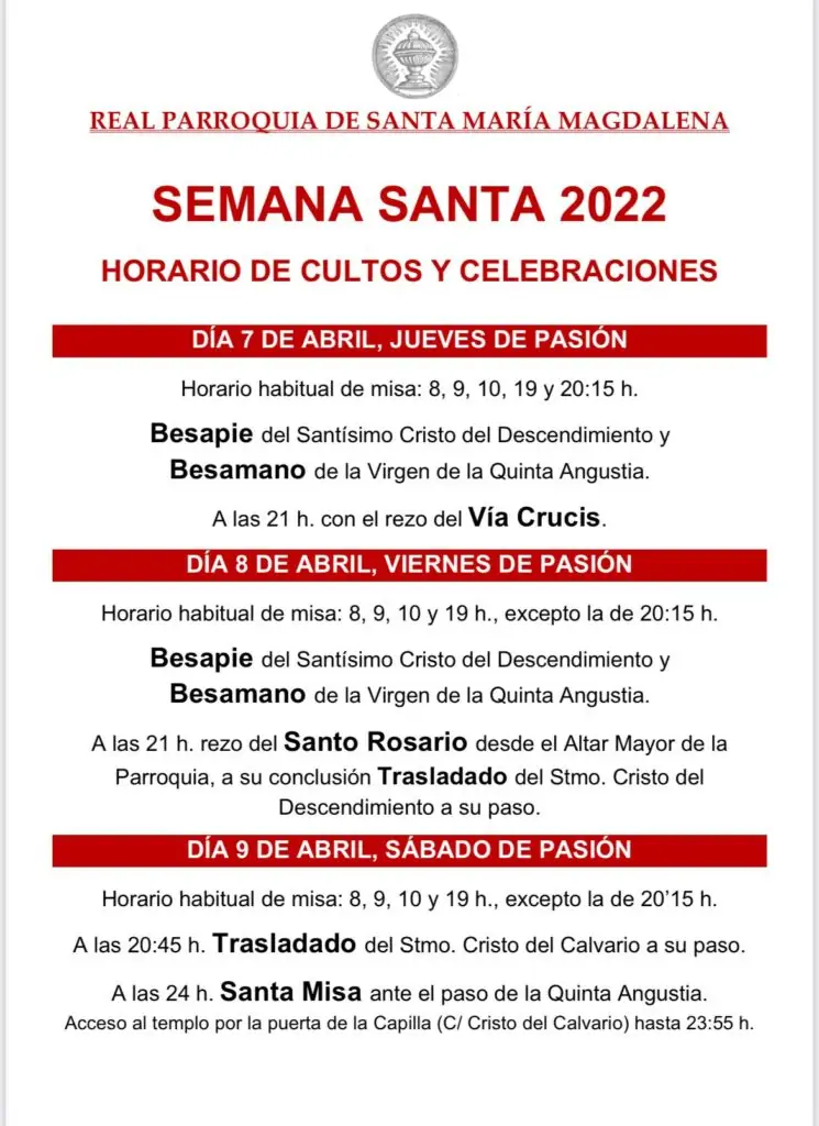 Horario de Misas y Celebraciones en Semana Santa 2022