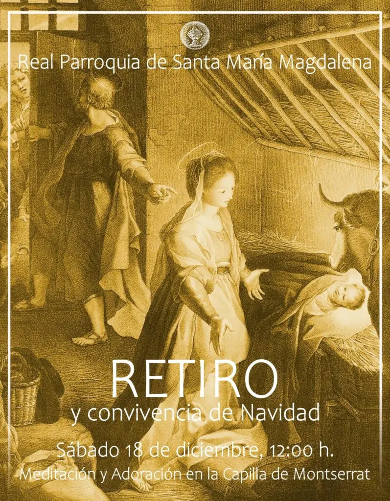 El próximo sábado 18 de diciembre a las 12:00h. tendrá lugar en la Capilla de Montserrat el retiro de Navidad. Será un momento de oración y meditación ante la llegada del Nacimiento del Niño Dios. Preparar y meditar el motivo de las fiestas que celebramos y hacer un parón para adorar a Dios. Posteriormente, a […]