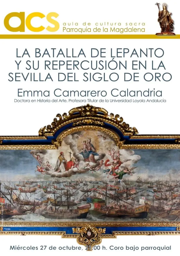 La próxima sesión del Aula de Cultura Sacra de nuestra parroquia tendrá lugar el próximo 27 de octubre. El título de la ponencia es: "La Batalla de Lepanto y su repercusión en la Sevilla del siglo de oro" y será impartida por Emma Camarero Calandria, doctora en Historia del Arte y profesora titular de la Universidad […]