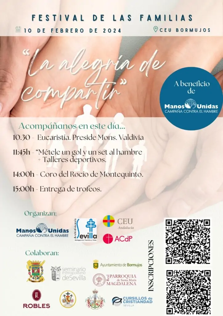 El evento se organiza en el marco de la celebración del Festival de las Familias ‘La alegría de compartir’, organizado por la Delegación Diocesana de Familia y Vida, CEU y Manos Unidas. Este día festivo y de fraternidad diocesana iniciará con una Eucaristía presidida por el obispo auxiliar, monseñor Ramón Valdivia, a las 10:30, haciéndola coincidir con la clausura de la XVII Jornadas Católicos y Vida Pública.