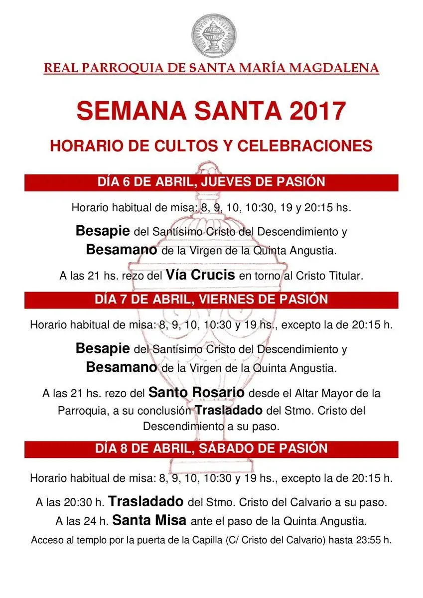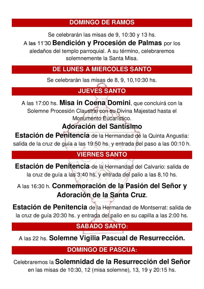 Horarios durante la próxima Semana Santa en nuestra parroquia