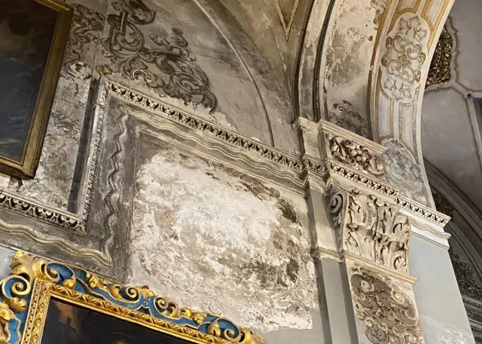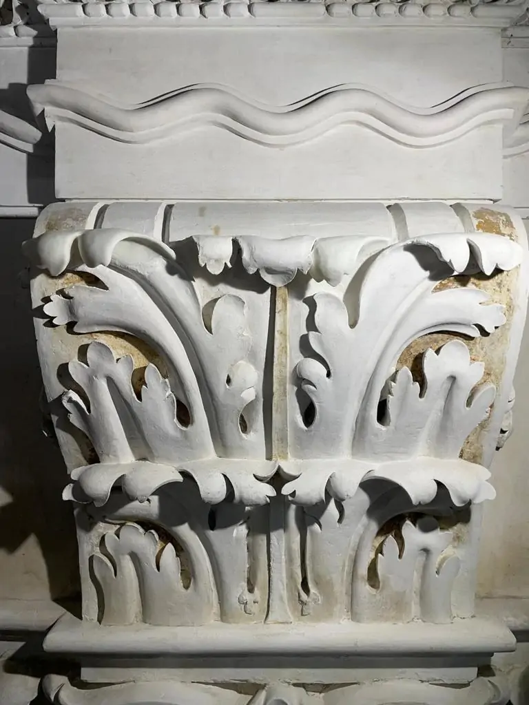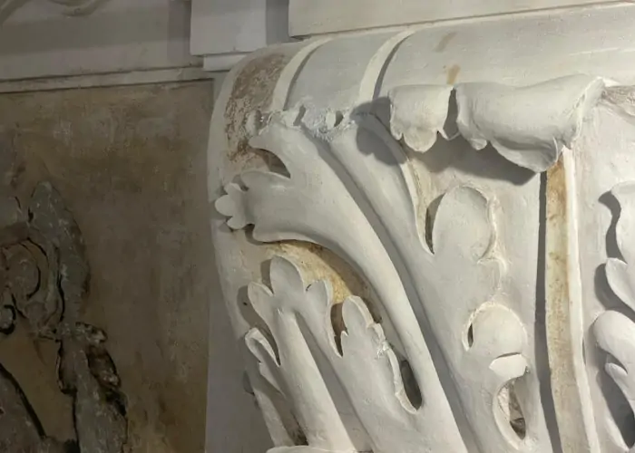 Desde ahí, se han realizado piezas de material resinoso, que por un lado, no afectan al original, siendo además reversibles, que finalmente son integradas cromáticamente, permitiendo la recuperación visual del conjunto de las yeserías sin pérdidas notorias a la vista.