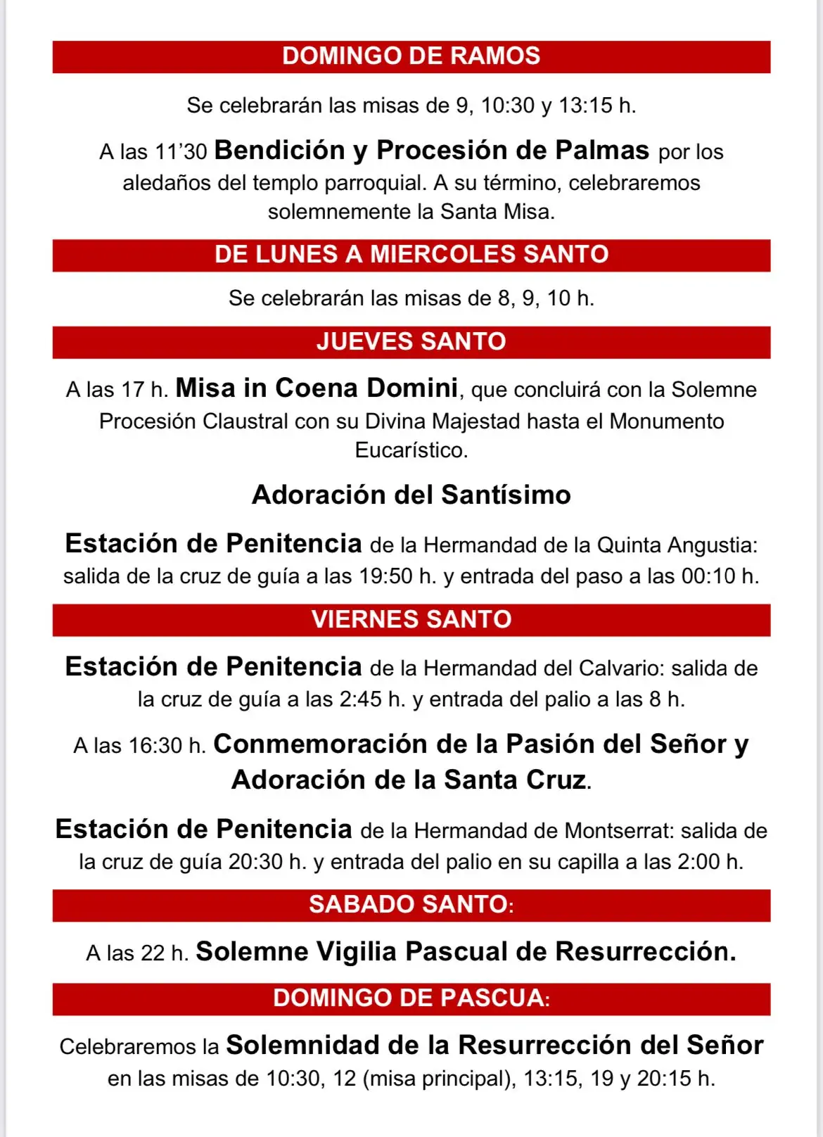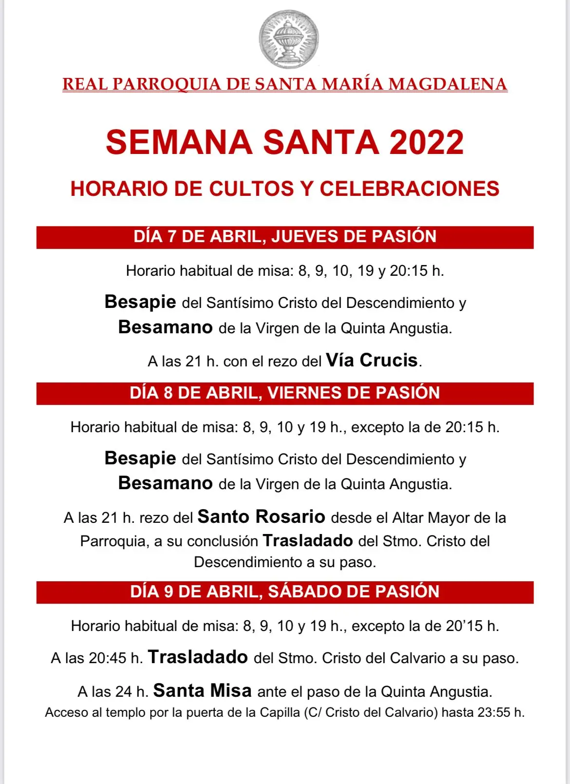 Horario de Misas y Celebraciones en Semana Santa 2022