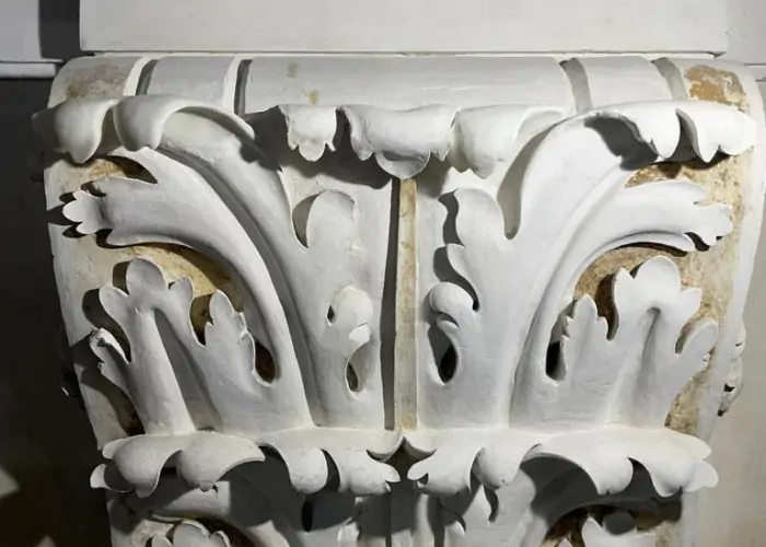 Desde ahí, se han realizado piezas de material resinoso, que por un lado, no afectan al original, siendo además reversibles, que finalmente son integradas cromáticamente, permitiendo la recuperación visual del conjunto de las yeserías sin pérdidas notorias a la vista.